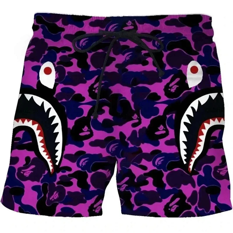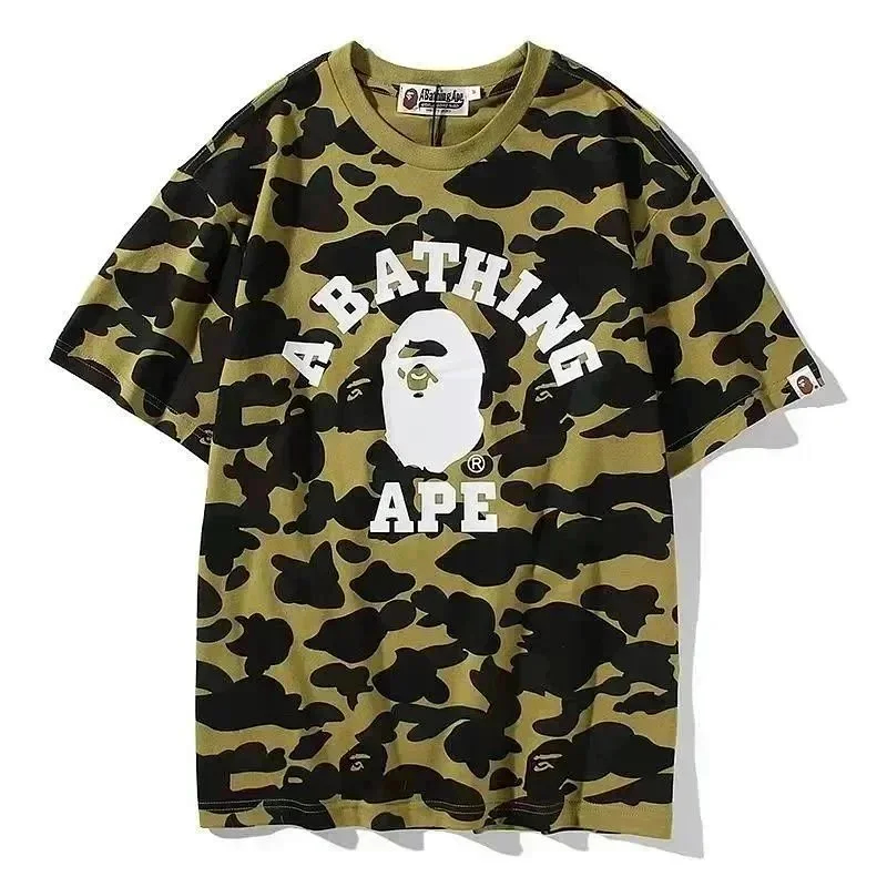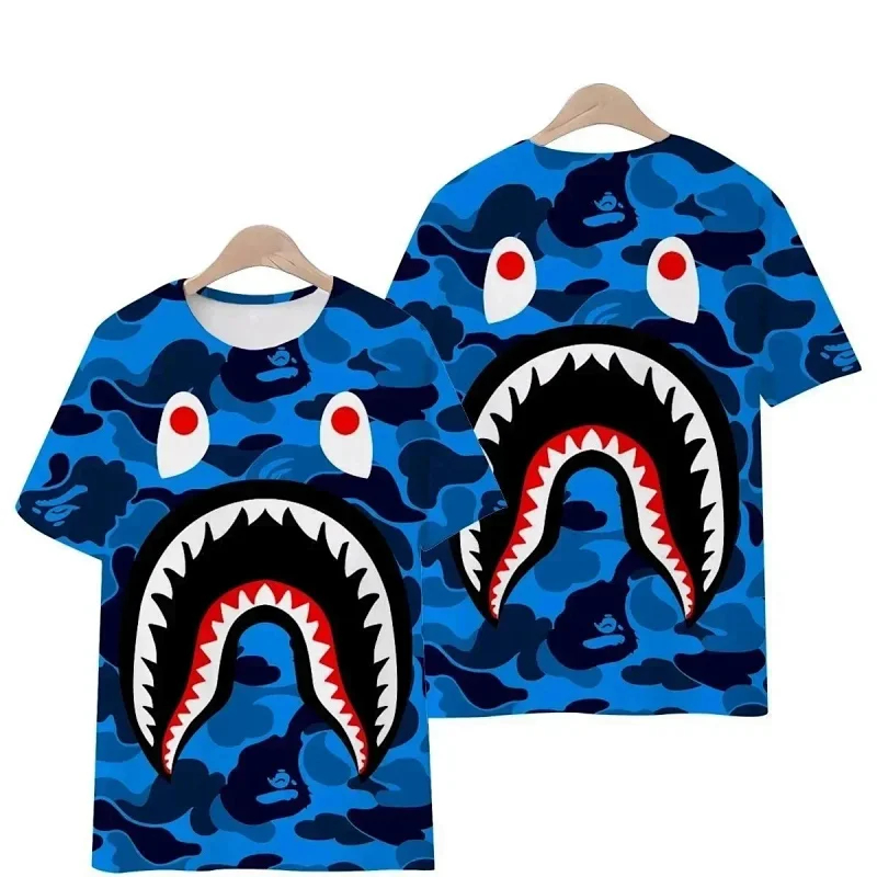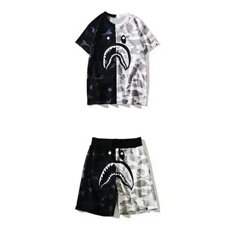 Bape shark zipper letter full print camouflage pattern short-sleeved T-shirt shorts set-2818